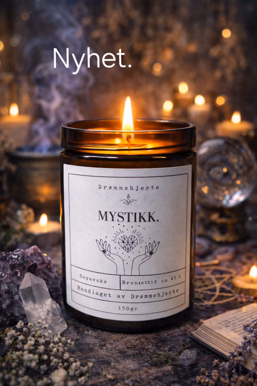 Mystikk er et elegant og fengslende duftlys som skaper en lun og stemningsfull atmosfære i hjemmet ditt. Duften er orientalsk, varm og lett røykaktig – perfekt når du ønsker ro, nærvær og en følelse av noe litt magisk.