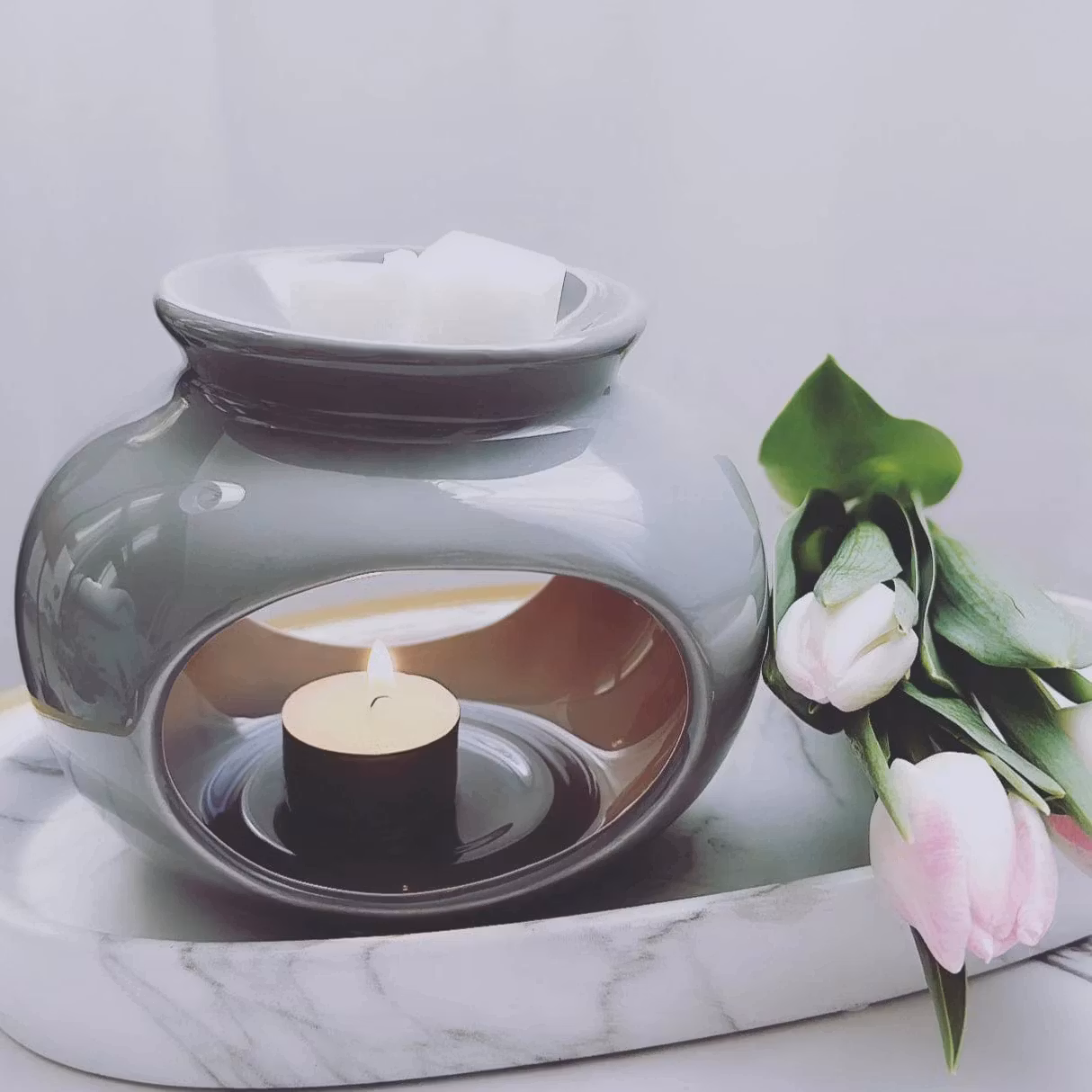 En nydelig rund keramisk voksbrenner som er stor og tydelig i størrelsen, men myk i formen.